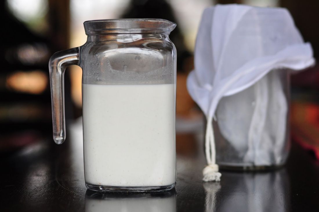 -- I'm curious whether straining with a nut-milk bag rather than a flour sack towel would improve my yield.