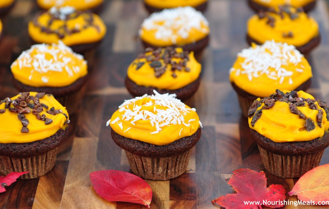 Ali Segersten Oct 29, 2012 29 commentsI thought these grain-free, nut-free chocolate cupcakes with bright orange frosting looked especially festive for Halloween. You could even offer them to your children in exchange for their candy loot!