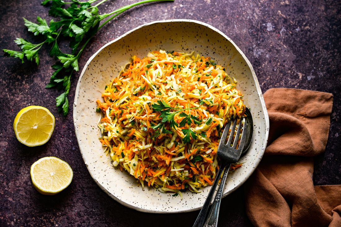 Light, flavorful, and full of color, this slaw makes it easy to nourish detox pathways, calm inflammation, and restore balance from within. Cabbage belongs to the cruciferous vegetable family and contains glucosinolates that convert to sulforaphane, a powerful compound shown to activate the body’s detoxification enzymes and strengthen cellular resilience. Carrots provide carotenoids that protect against oxidative stress, while parsley contributes apigenin—a calming flavonoid that supports liver detoxification, soothes inflammation, and nourishes the nervous system. Garlic adds sulfur compounds that further enhance detox pathways and balance gut microbes, while fresh lemon juice and zest awaken digestion and stimulate bile flow. Enjoy this crisp, colorful salad alongside roasted fish, chicken, or lentils, or savor it on its own as a daily dose of detox nourishment.