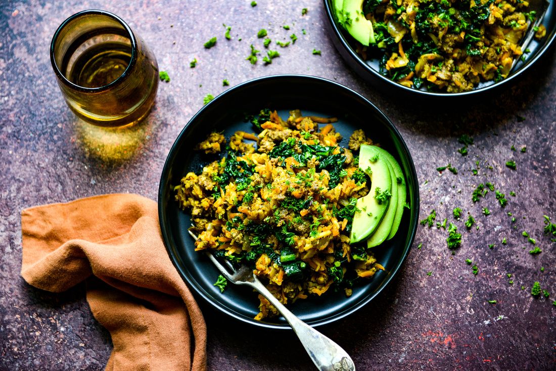 A nourishing one-pan meal for the elimination diet—simple, grounding, and full of fiber-rich vegetables that support detoxification and gut health. Elk is a lean, high-quality protein naturally rich in B vitamins (especially B12 and niacin), iron, zinc, and selenium—all vital for energy production, immune balance, and tissue repair. The combination of savory ground elk, grated roots, and tender kale creates a balanced, satisfying dish you can enjoy any time of day. Serve with avocado slices to add healthy fats that support nutrient absorption and satiety. If you’re not following a low-histamine diet, try serving it with a spoonful of sauerkraut or another fermented vegetable for natural probiotic support and a bright, tangy contrast.