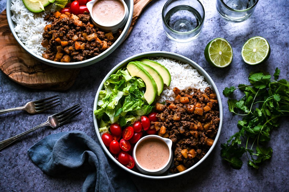 This taco bowl is a simple, satisfying meal built from seasoned ground beef, tender potatoes, fresh vegetables, and a creamy sauce to bring it all together. It’s a great option for hungry teenagers or busy evenings when you need something filling and balanced. For a lower-carbohydrate variation, omit the rice and add more fresh vegetables like lettuce, tomatoes, or avocado.