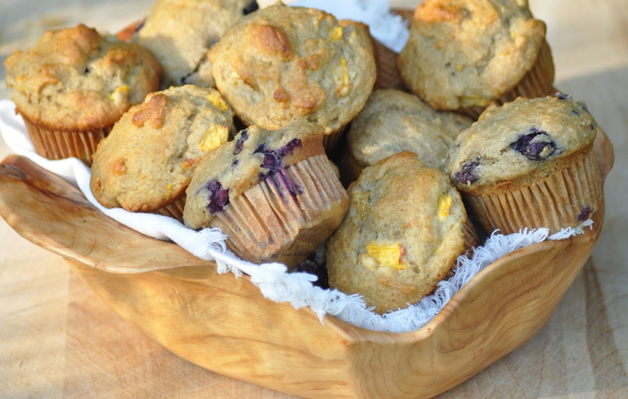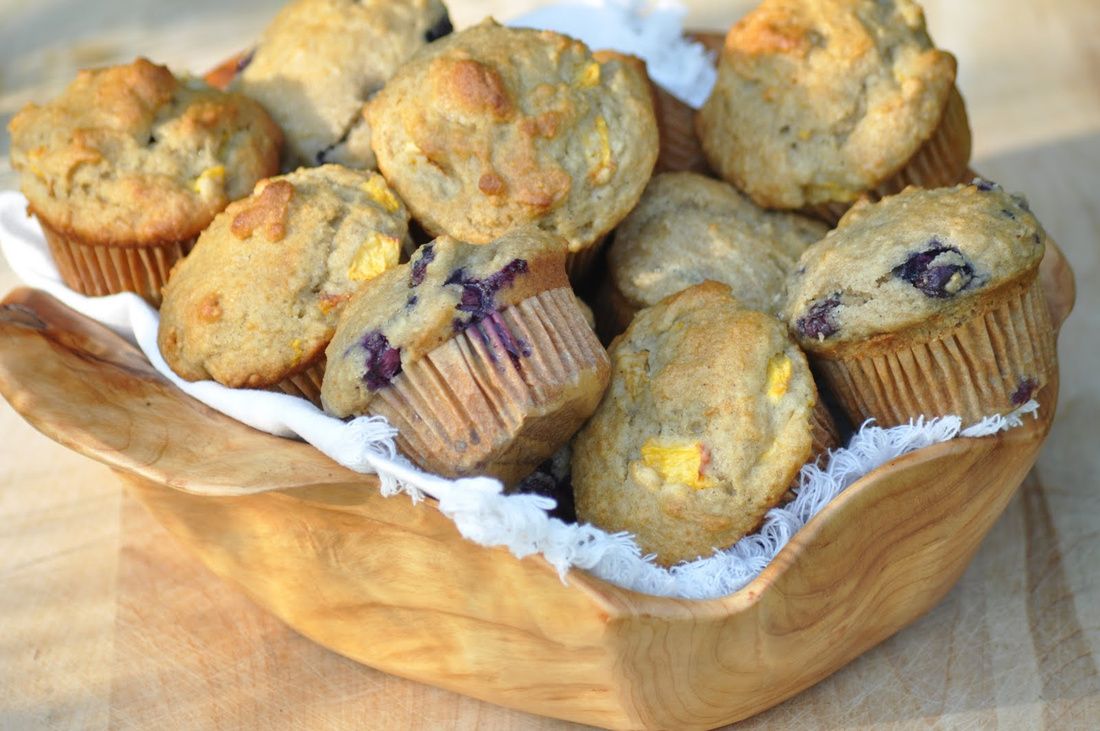 These gluten-free, dairy-free beauties are packed with flavor! I have added a whole cup of almond flour which raises the protein and overall nutritional value. I also use sorghum flour which bakes up nice and light. I use unsweetened hemp milk for the milk, though I am sure cow or goat milk would work as well. Use two cups of diced fresh peaches or a combination of peaches and fresh blueberries. Other fruits work as well such as raspberries, blackberries, or chopped cherries!