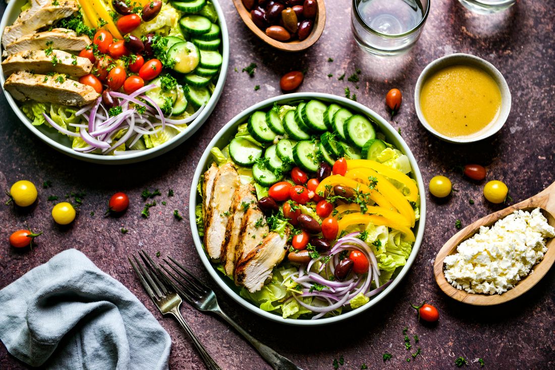 This vibrant salad captures the essence of the Mediterranean—bright herbs, juicy tomatoes, crisp cucumbers, and tender grilled chicken drizzled with a lemon–red wine vinaigrette. Every bite feels alive with flavor and nourishment. Packed with antioxidants, polyphenols, and heart-healthy fats, it supports both cellular vitality and mood balance. Serve it on a warm summer evening or as a meal-prep favorite for the week.