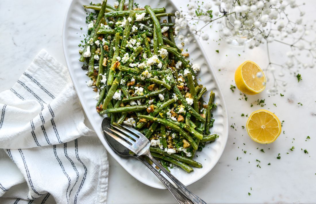 Serve this simple roasted green bean dish with any type of Mediterranean or Greek-style main dish such as Lamb Shawarma, Lamb Burgers, Greek Lemon Chicken, or Basil-Balsamic Salmon. It's simple enough for a weeknight dinner, yet elegant enough for a holiday meal.
