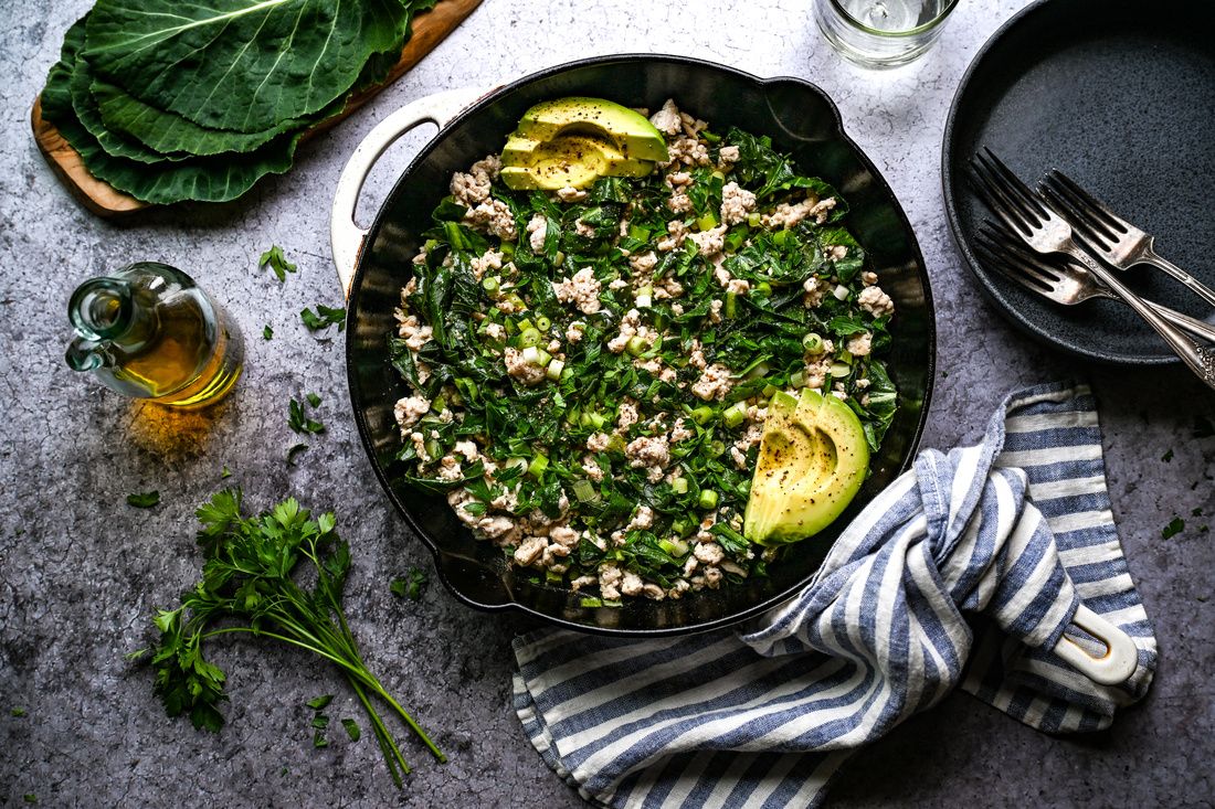 This savory turkey and collard greens skillet is a simple, deeply nourishing meal rich in protein, minerals, and fiber to support steady energy and digestion. Collard greens provide calcium and beneficial plant compounds that support detoxification pathways, while turkey offers a clean source of protein. Finished with fresh herbs for brightness and balance, this dish comes together quickly and makes a wonderful breakfast, lunch, or dinner.