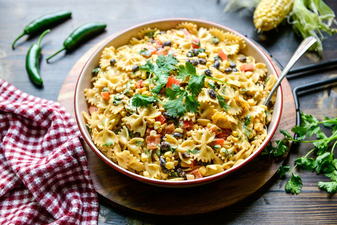Serve this simple pasta salad during the summer, when fresh corn is in season. Other veggies can also be added to the salad, such as diced sweet onion, diced avocado, or diced green bell peppers. Serve each bowl with a squeeze of lime and extra hot chili peppers!