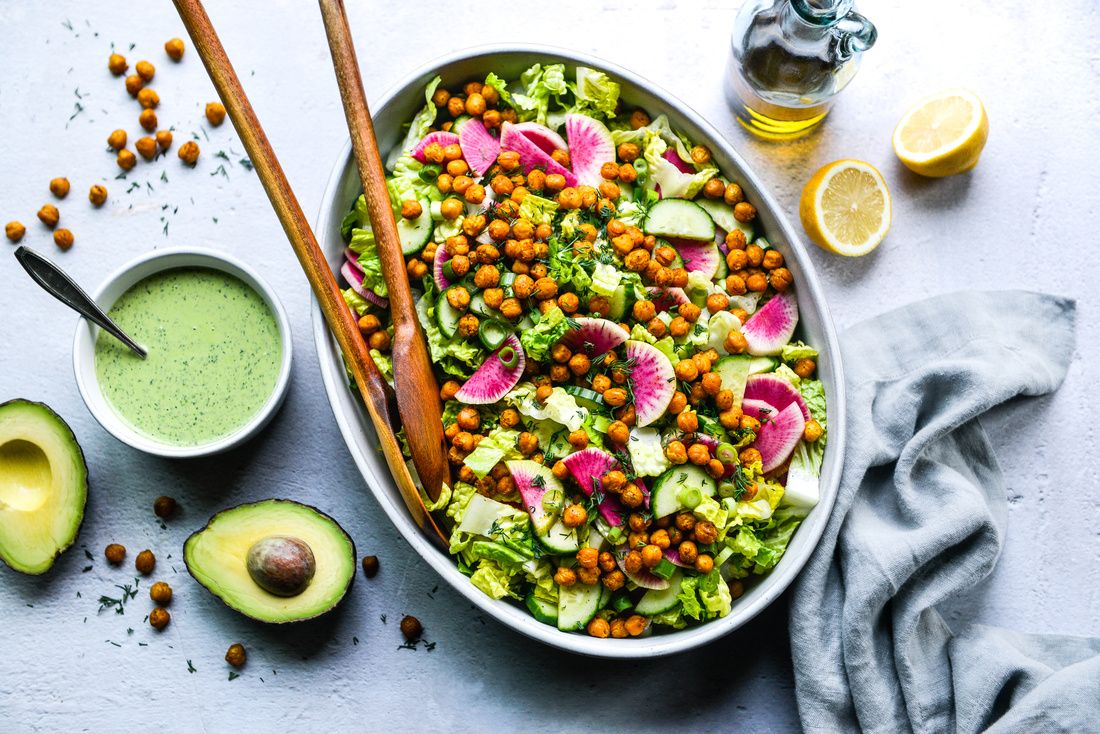 Turmeric Roasted Chickpea and Watermelon Radish Salad with Creamy Parsley-Dill Dressing